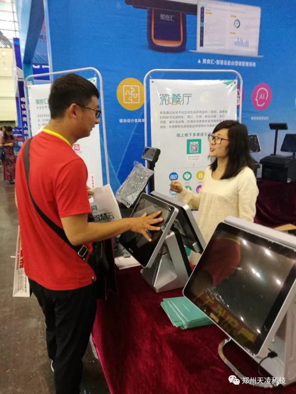 展會期間,鄭州天凌科技展臺吸引了無數參展者的駐足,而工作人員也始終以飽滿的熱情,耐心地與參展者溝通,使到會人員對于公司產品排隊網聚食匯餐飲軟件,信芯收款機,松達觸摸屏有了更深入的了解,特別是排隊網的智能會員營銷系統吸引了大家的極大興趣,很多客戶現場進行了詳細的咨詢,希望通過這次機會能有深入的合作。
