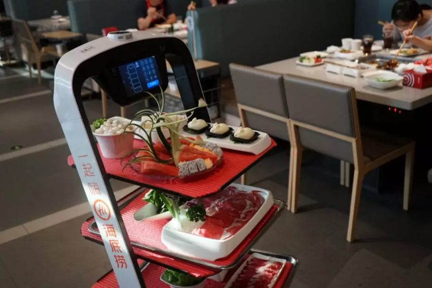 在國慶期間,某知名連鎖火鍋餐飲品牌在門店內使用了兩臺送餐機器人,一天最高配送636盤餐品,大大緩解了服務員的傳菜壓力。目前,包括海底撈、呷哺呷哺等眾多知名品牌餐廳已通過使用機器人減少員工排班輪次、或每次排班的人數,來減輕員工壓力。