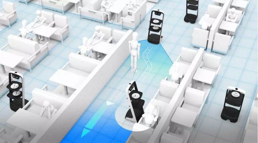 “歡樂送”送餐機器人上采用了3D避障方案,3D立體傳感器能快速對周邊環境進行立體建模,不僅能識別餐廳桌椅、小料臺等靜態障礙物,更能夠對人、手推車這類餐廳里常見的動態障礙物進行感知,從而做到極速避障,極大降低安全事故發生的概率。