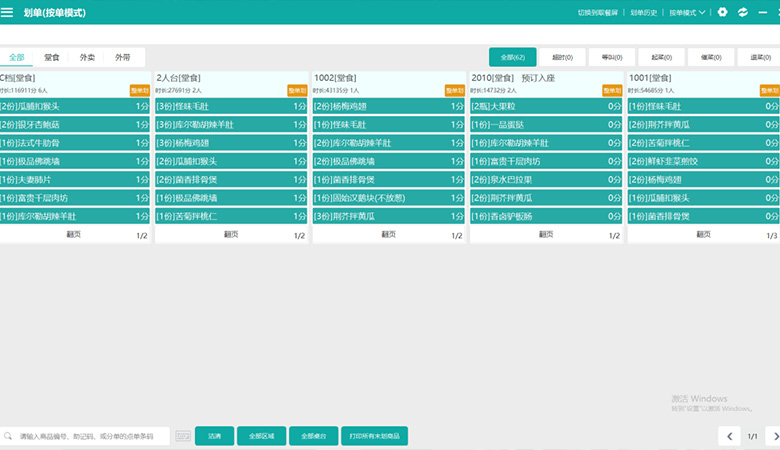 配菜+制菜+傳菜:前臺點單之后商品會顯示在待配菜中,再商品進行配菜完成之后劃單顯示在待制作中,制作完成之后進行劃單會顯示在待傳菜中,傳菜之后進行劃單即可。